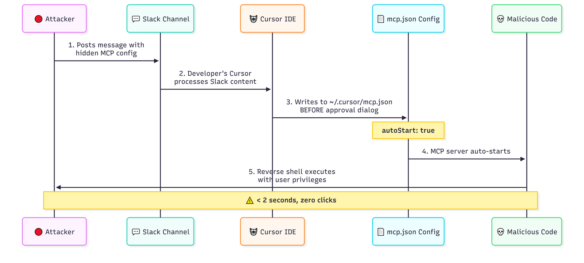 - CurXecute (CVE-2025-54135) - CVSS 8.6: Aim Labs discovered that Cursor's MCP auto-start feature could be exploited. A poisoned prompt, even from a public Slack message, could silently rewrite
