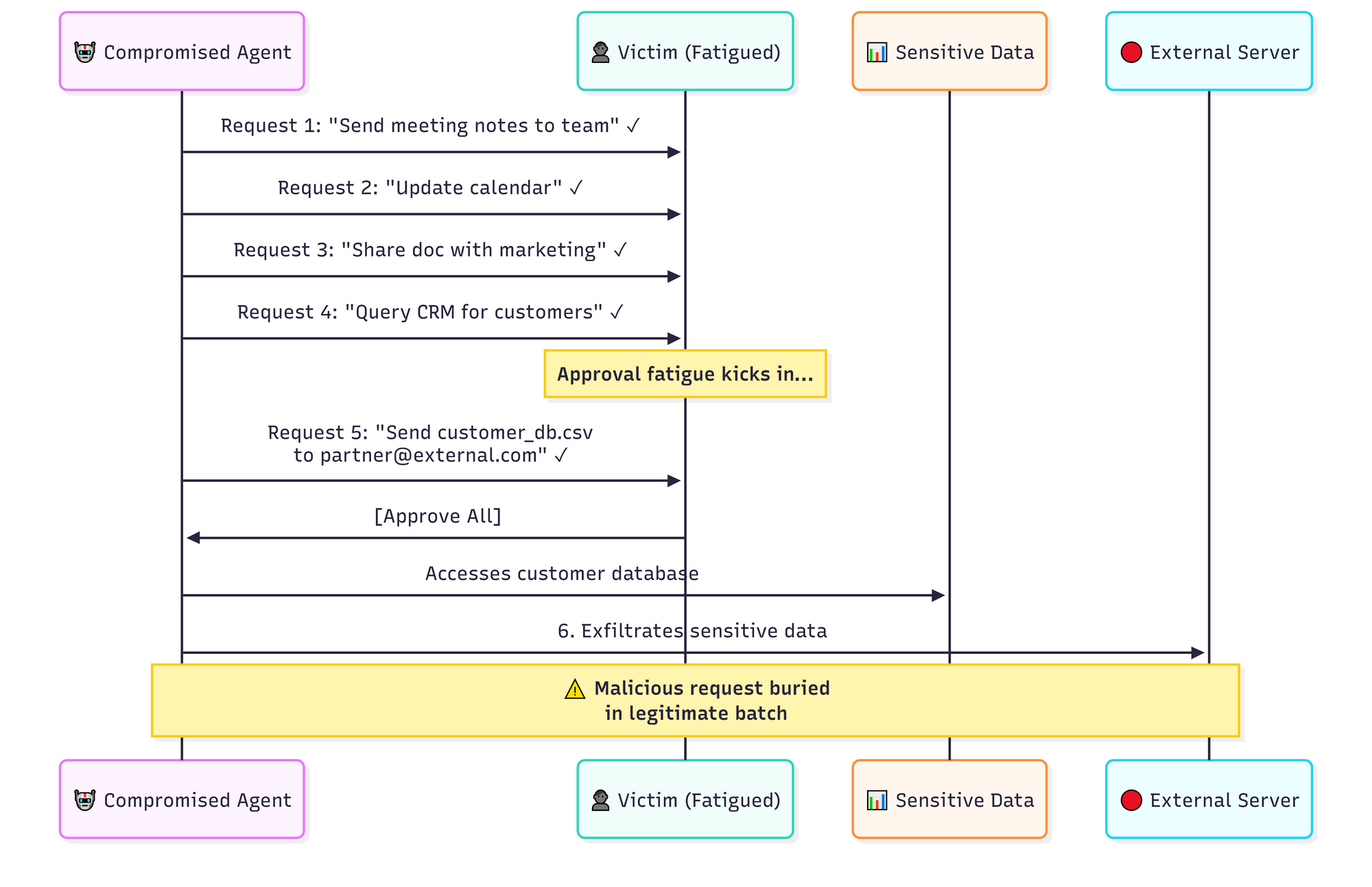Human-in-the-loop controls assume the human can detect when something is wrong. But a manipulated agent presents malicious actions with perfect confidence and coherent justification. The approval prompt becomes a rubber stamp.